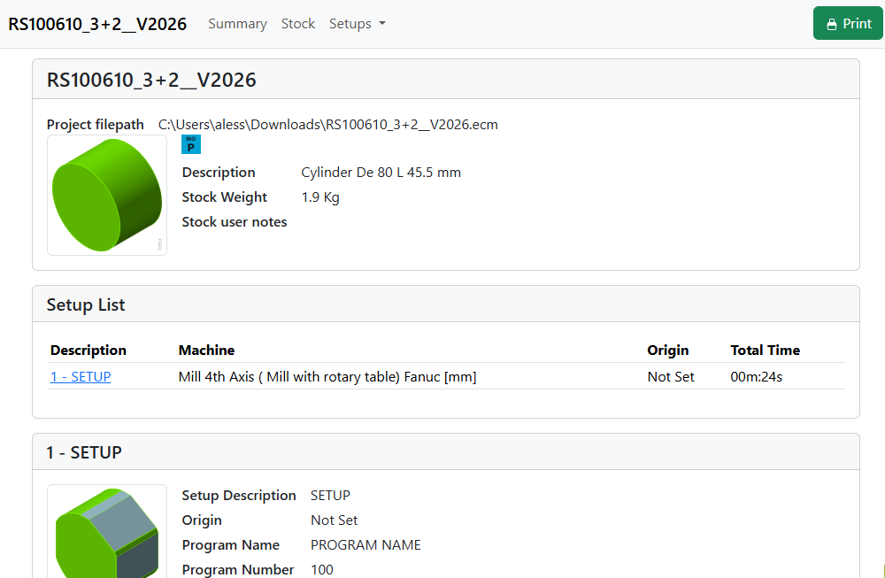 Is possible create a setup sheet , containing all the necessary informations used in machine etup stage .